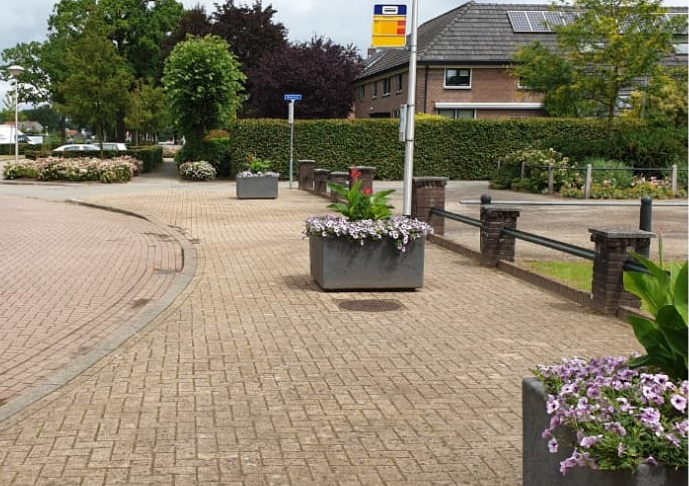 - Boomsingels en plantenbakken vullen met fleurige bloemen en planten